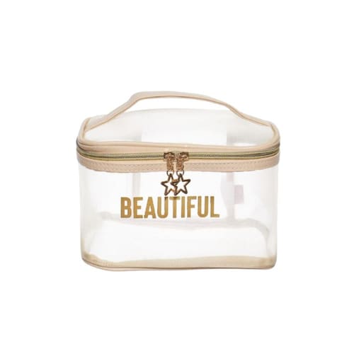 Necessaire Qualis Transparente Letras em Dourado NS2310 Necessaire Qualis transparente, coisas de diva, espaçosa e muito util para viagens de todos os tipos