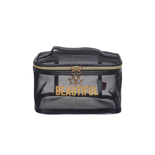 Necessaire Qualis Transparente Letras em Dourado NS2310 Necessaire Qualis transparente, coisas de diva, espaçosa e muito util para viagens de todos os tipos