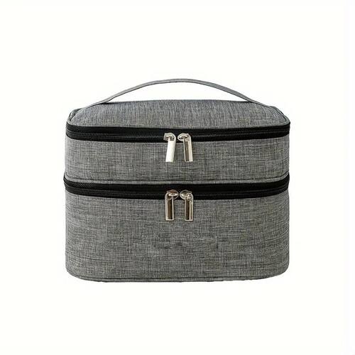 Necessaire Viagem Dupla Organizador Cor: Cinza Cansada de suas maquiagens se espalharem pela mala Com a Necessaire de Dois Andares, você organiza seus produtos de beleza com praticidade e elegância, seja para uma viagem rápida ou uma aventura inesquecível. Sua Maquiagem Viaja em Grande Estilo com a Necessaire de Dois Andares Dois andares de espaço amplo: - Guarde seus pincéis, batons, paletas e muito mais em compartimentos separados, facilitando a organização e o acesso aos seus itens. - Diga adeus à bagunça e encontre tudo o que precisa em segundos Design moderno e atemporal: - A necessaire lisa e minimalista combina com qualquer estilo e ocasião. - Confeccionada com materiais de alta qualidade, garante durabilidade e resistência para te acompanhar em todas as suas viagens. - Fechamento em zíper resistente para manter seus produtos seguros. - Alça de mão para facilitar o transporte. Com a Necessaire de Dois Andares, você: - Viaja com tranquilidade, sabendo que seus produtos de beleza estão bem organizados e protegidos. - Economiza tempo na hora de se maquiar, encontrando tudo o que precisa com facilidade. - Mantém suas maquiagens em perfeito estado, evitando que se quebrem ou estraguem durante o trajeto. Invista em praticidade, organização e estilo para suas viagens Especificações Técnicas: - Modelo: Necessaire Bolsa Dupla - Material: Poliéster - Dimensões Aprox.: 23cm X 17cm X 15,5cm Itens Inclusos na Embalagem: - 01x Necessaire Bolsa Dupla