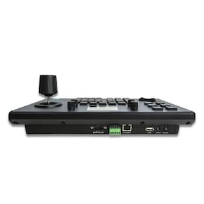 Ajuste via browser para fácil configuração; Joystick do tipo 4d: para cima, para baixo, esquerda, direita e zoom / tele / wide via rotação; Atalho para até 7 câmeras direto do painel Alimentação poe; Protocolos visca, visca sobre ip, onvif, pelco-p e pelco-d.