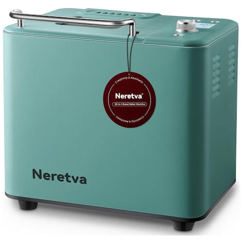 O PÃO CASEIRO É MAIS SAUDÁVEL DO QUE VOCÊ PODE COMPRAR NA PADARIA. Máquina de fazer pão de aço inoxidável com bandeja antiaderente removível e pá de amassar que limpa facilmente. Possui um motor AC super silencioso e tubos de aquecimento duplos para máxima eficiência. Você só precisa adicionar ingredientes farinha, fermento, água, sal e ovo para ser recompensado com pães com pontas crocantes e com centro fofo que evitam aditivos e conservantes