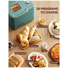 ENTUSIASTA DE COZINHA INCRÍVEL, ADORADA POR MAIS DE 5 MILHÕES. A máquina de fazer pão possui 20 opções pré programadas, incluindo Pão Rápido, Sem Glúten, Trigo Integral Francês, Pão Doce, Massa, Bolo, iogurte, geléia, ect. Com esta máquina de fazer pão, você pode escolher entre pães de 680g a 1 kg, bem como 3 tons de crosta claro, médio, escuro, para que você possa fazer uma variedade de pães. É perfeito para toda a família, escritório, cafés, etc.
