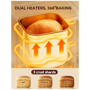 UM PÃO INDEFINIDO SEJA FEITO AO TOQUE DE UM BOTÃO. Esta máquina de fazer pão com design exclusivo de botão que ajusta automaticamente os tempos de amassar, crescer e assar para assar perfeitamente uma variedade de pães. O display LCD brilhante é fácil de programar e informa a que horas o pão será feito. Além disso, a máquina de pão vem com uma janela de visualização que o ajuda a verificar como o pão está crescendo e assando. Possui um recurso de pausa útil para que você possa fazer ajustes conforme necessário durante o processo.