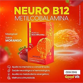 Neuro B12 Metilcobalamina ´euma forma ativa de vitamina B12 e seus benefícios são semelhantes aos da própria B12. * Melhora a função cognitiva: A Metilcobalamina é essencial para a saúde do sistema nervoso e pode ajudar a melhorar a função cognitiva, incluindo a memória e a concentração. * Aumento da energia: A Metilcobalamina participa do metabolismo energético, ajudando o corpo a converter alimentos em energia. Isso pode ajudar a reduzir a fadiga e aumentar os níveis de energia * Suporte ao sistema imunológico: A Metilcobalamina desempenha um papel na produção de glóbulos brancos, que são essenciais para o funcionamento adequado do sistema imunológico, ajudando o corpo a defender-se de infecções e doenças. Recomendação de uso: 1 comprimido ao dia