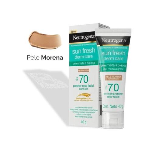 Protetor solar facial com cor, tom médio. Alta proteção contra os raios UVA/UVB, FPS 70. Ideal para peles mistas e oleosas. Disfarça poros e imperfeições. Com complexo antioxidante rejuvenescedor.