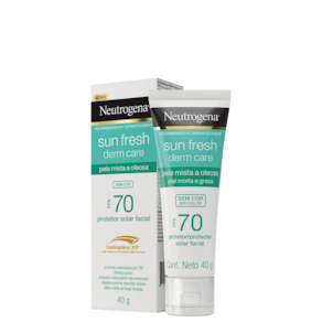O Protetor Solar Neutrogena Sun Fresh Derm Care FPS 70 proporciona uma solução altamente eficaz contra o brilho excessivo enquanto garante alto fator de proteção. Neutrogena Sun Fresh possui textura ultraleve é rapidamente absorvida, garantindo o controle de oleosidade por 12 horas.