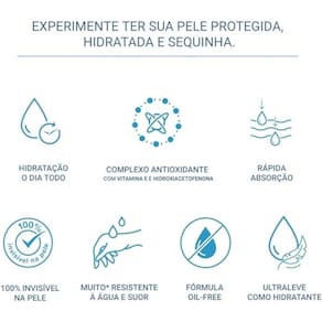 Sua fórmula entrega alta proteção invisível, textura ultraleve como um hidratante e não deixa resíduos na superfície da pele; modo de usar: aplique abundantemente antes da exposição ao sol É necessária a reaplicação do produto para manter sua efetividade; reaplicar sempre, após sudorese intensa, nadar ou banhar-se, secar-se com toalha e durante a exposição ao sol Para fechar, pressione o centro da tampa; precauções: uso externo; evite contato com os olhos; caso isso aconteça, enxágue-os com água em abundância Descontinue o uso se surgirem irritações na pele; se a quantidade aplicada não for adequada, o nível de proteção será signi cativamente reduzido O produto ajuda a prevenir as queimaduras solares, mas não oferece nenhuma proteção contra insolação; evite exposição prolongada das crianças ao sol