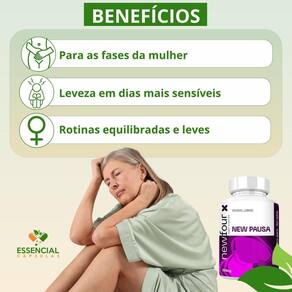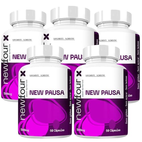 New pausa kit com 5 potes com total de 300 capsulas Bem vindo a à essencial cápsulas Aqui, acreditamos que cuidar da saúde pode e deve ser algo natural, leve e diário. Produto: - new pausa 60 cápsulas Marca: - new four Benefícios: combinação de vitaminas e minerais essenciais fórmula pensada para mulheres em fase de transição natural Sugestão de consumo pelo fabricante : - 02 cápsulas ao dia - ingerir com 200ml de água Importante saber: - este produto é um suplemento alimentar natural. - não é e não substitui uma alimentação equilibrada nem o acompanhamento de um da saúde. - como um produto natural, seus benefícios podem ser vistos a partir de alguns dias do uso. - os suplementos são destinados a pessoas saudáveis. Sua finalidade é fornecer nutrientes, substâncias bioativas, enzimas ou probióticos em complemento à alimentação. Composição: - vitamina d, vitamina e, vitamina c, coenzima q10, vitamina a, inositol, vitamina b6, l-triptofano, vitamina b12, vitamina k2m7, selênio, astaxantina, zeaxantina, luteína, zinco. Não contém glúten Contraindicação: - o uso não é recomendado para gestantes, lactantes e crianças. - em caso de uso contínuo de medicamentos ou condições específicas de saúde, busque a orientação de um da saúde. Qualidade: - sabemos que o mercado de suplementos é competitivo, com opções para todos os públicos e faixas de preço. Na nossa loja, priorizamos a qualidade em cada detalhe. Por isso, escolhemos trabalhar apenas com fábricas que utilizam matérias-primas de excelência e seguem rigorosos padrões de produção. Enviamos rapidinho: - seu pedido é preparado com todo cuidado e postado em até 24 horas úteis após a confirmação da compra. na maioria das vezes, enviamos bem antes disso Fale conosco: Tem dúvidas ou quer conversar sobre o produto Nosso atendimento é humanizado e está sempre pronto para te ouvir com muita atenção