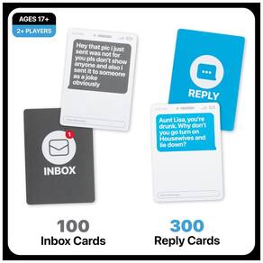 The Party jogo Este é o jogo de festa de mensagem de texto 100 offline, onde os jogadores competem para criar o segmento de mensagem de texto mais engraçado. Projetado para maiores de 17 anos este jogo contém conteúdo adulto e foi desenvolvido para maiores de 17 anos. Incentivado a ser jogado com 3 jogadores. Como jogar Os jogadores alternam o sorteio de um cartão enviado ou caixa de entrada enquanto o resto do grupo compete para jogar o cartão de resposta mais engraçado. Uma vez que todos no grupo tenham jogado o cartão de resposta escolhido, o juiz decide qual combinação é a mais engraçada. Essa pessoa ganha um ponto. A pessoa com mais cartas no final, ganha. Conteúdo Inclui 240 cartões de caixa de entrada e 300 cartões de resposta, além de instruções Marca: Não Informado
