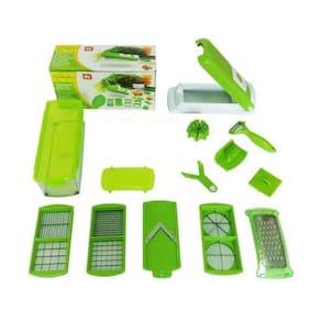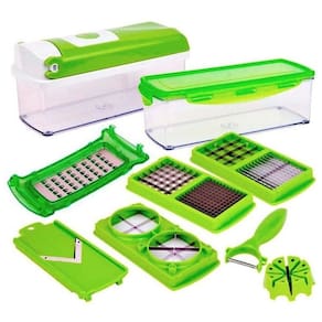PRINCIPAIS BENEFÍCIOS: - Descasca, fatia, corta em cubos em 3 tamanhos diferentes, corta em tiras, faz cortes triangulares de 2 tamanhos, tudo isso em apenas um produto - É capaz de fatiar alimentos para vinagretes, temperos, saladas e patês em instantes de maneira uniforme. - Os alimentos são processados e armazenados diretamente em seu próprio pote que pode ser levado à geladeira - Você não precisa ter contato com os alimentos, evitando ficar com aquele cheiro desagradável nas mãos. - Possui design moderno, compacto e todas as suas peças podem ser lavadas.