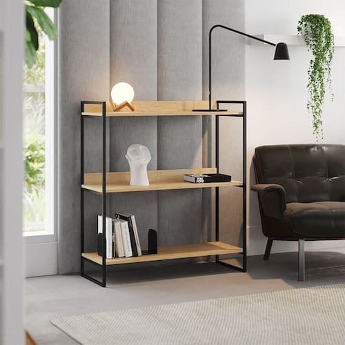 IMAGENS MERAMENTE ILUSTRATIVAS REALIZADO EDIÇÃO, PODENDO HAVER UMA PEQUENA VARIAÇÃO DE COR DEPENDENDO DE CADA TELA OU MONITOR.Nicho 3 Prateleiras 95cm Industrial CÃrdoba Preto E Castanho