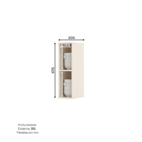 O Armário Aéreo Nicho 20 cm da Linha Connect Henn é super versátil, foi projetado para proporcionar praticidade e funcionalidade. Pode ser utilizado em vários ambientes, se adequa tanto à espaços maiores, quanto os mais compactos. Medidas (AxLxP): 67,5x20x31,5cm. Sua estrutura é 100% MDF, material de excelente qualidade que suporta variações de temperatura. Confira outras opções da Cozinha Modulada Connect Henn, são mais de 30 módulos que permitem criar composições diferentes de acordo com o espaço disponível. Acabamento: Pintura UV Altura: 67.5 Ambiente Principal: Cozinha Complexidade da Montagem: Baixa: pode ser montado por uma pessoa sozinha Cor: Off White Cor do Produto: Off White Escala de Brilho: Brilhante Informações Complementares: 100% MDF Itens Inclusos: 1 Nicho, Manual de Montagem e Kit Ferragens Largura: 20 Linha ou Coleção: Connect Manual de Montagem e Instalação: https://product-hub-prd.madeiramadeira.com.br/831558/documents/a37070c5-6b95-464b-8202-f56b20b4c2c04c50aereonicho200mmconnect.pdf Material da Prateleira: MDF Material do Fundo: MDF Material Principal: MDF Necessita Montagem: Sim Origem do Produto: Nacional Peso: 6.5 Peso Máximo por Prateleira: 8 Possui Espelho: Não Possui Possui Fundo: Sim Possui Portas: Não Possui Prateleiras: 01 Possui Toalheiro: Não Profundidade: 31.5 Recomendações de Uso, Manutenção e Limpeza: Limpar com pano levemente umedecido com água. Sistema de Montagem: Parafusos e cavilhas Suporta Até (kg): 16 Tipo de Nicho: Prateleira Ean: 7909903336076