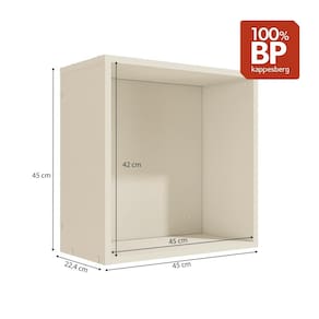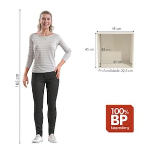 Medindo 45cm de altura, 45cm de largura e 23cm de profundidade, é produzido totalmente em MDP de 15mm em acabamento BP, garantindo maior durabilidade e resistência, principalmente contra riscos, arranhões e gotas d'água. Combinando com todos os espaços e estilos de decoração, o nicho é na cor argila, tom leve e neutro, ideal para o quartinho das crianças.