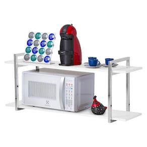 Característica técnica Material: aço e mdf. Dimensões do tubo da estrutura: tubo quadrado 20x20 mm. Acabamento da estrutura de aço: cromado Acabamento do mdf: branco