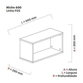 Nicho da nossa linha arena são fabricados com base e tampo de MDP BP 15mm com bordas em pvc 0,045mm, possui divisores com MDP BP 25mm com bordas de 2mm. Diversas opções de cores possibilitando você escolher a que mas combina com seus gosto. Ambiente Principal: Escritório Complexidade da Montagem: Média: pode ser montado por mais de uma pessoa e/ou necessite de maior conhecimento para montagem Cor: Noce Marromlle Cor do Produto: Noce Marromlle Escala de Brilho: Semi-Fosco Itens Inclusos: 1 Nicho, kit ferragens e manual de montagem Linha ou Coleção: P25 Manual de Montagem e Instalação: https://cdn2.madeiramadeira.com.br/atributo/pandin/1364438-nicho-600.pdf Material da Prateleira: MDP Material do Fundo: MDP Material Principal: MDP Necessita Montagem: Sim Origem do Produto: Nacional Peso: 5,6 kg Peso Máximo por Prateleira: 15 kg Possui Espelho: Não Possui Possui Fundo: Sim Possui Portas: Não Possui Prateleiras: 01 Possui Toalheiro: Não Recomendações de Uso, Manutenção e Limpeza: Utilizar um pano levemente umedecido com água, para finalizar utilizar um pano seco. Sistema de Montagem: Parafusos Suporta Até (kg): 15 kg Tipo de Nicho: Prateleira