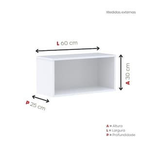 Nicho De Parede 300x600mm Branco Nicho de parede 300x600mm Branco - O Nicho de Parede 300x600x250mm é a solução ideal para quem busca praticidade, organização e um toque moderno na decoração. Fabricado em material resistente e com excelente acabamento, ele oferece um espaço funcional para armazenar objetos, livros, pastas, itens decorativos ou materiais de trabalho.