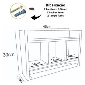 Material: confeccionado 100% em MDF de reflorestamento, com espessura de 15mm, e nas bordas frontais, são colocadas fitas de PVC que embelezam e aumentam a durabilidade, na linha de produtos naturais, aqueles que são vendidos para personalização ou utilização natural não acompanha tapa furos ou acabamento com PVC. Ainda conta com o acabamento feito à mão, para garantir a total qualidade do produto. Informações sobre as imagens do produto: - fazemos de tudo para apresentar imagens muito fiéis ao produto real. Porém, as cores do produto podem variar de acordo com o seu monitor, a iluminação do ambiente em que você está e até mesmo a sua percepção visual. - Além da cor pequenos detalhes e acabamentos podem não ficar evidentes na foto, por isso as imagens são meramente ilustrativas. - Os objetos decorativos que aparecem na foto não acompanham o produto. As medidas dos produtos estão nas fotos publicadas Os produtos que precisam de kit para instalação, ao exemplo de prateleiras, painéis, nichos e suportes acompanham o kit de instalação. Produtos enviados montados apenas requer instalação no local.