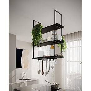 Nicho De Teto Para Cozinha 80 Cm Preto Com Prateleira Preta