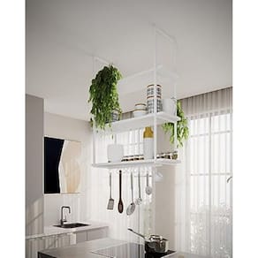 E não é só isso! O conjunto acompanha um exclusivo suporte de porta utensílios e talheres com 12 ganchos, para que você tenha sempre à mão suas xícaras, facas, panelas, talheres e outros objetos favoritos. E como se não bastasse, a estrutura é fabricada em aço resistente e durável, com uma camada de proteção contra ferrugem e acabamento de pintura eletrostática epóxi.