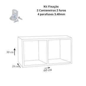 Material: confeccionado 100% em MDF de reflorestamento, com espessura de 15mm, e nas bordas frontais, são colocadas fitas de PVC que embelezam e aumentam a durabilidade, na linha de produtos naturais, aqueles que são vendidos para personalização ou utilização natural não acompanha tapa furos ou acabamento com PVC. Ainda conta com o acabamento feito à mão, para garantir a total qualidade do produto. Informações sobre as imagens do produto: - fazemos de tudo para apresentar imagens muito fiéis ao produto real. Porém, as cores do produto podem variar de acordo com o seu monitor, a iluminação do ambiente em que você está e até mesmo a sua percepção visual. - Além da cor pequenos detalhes e acabamentos podem não ficar evidentes na foto, por isso as imagens são meramente ilustrativas. - Os objetos decorativos que aparecem na foto não acompanham o produto. As medidas dos produtos estão nas fotos publicadas Os produtos que precisam de kit para instalação, ao exemplo de prateleiras, painéis, nichos e suportes acompanham o kit de instalação. Produtos enviados montados apenas requer instalação no local.