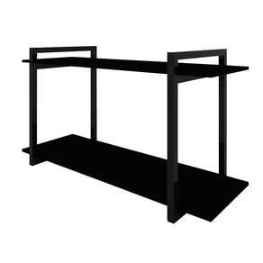 Característica Técnica Material: Aço e MDF. Dimensões do tubo da estrutura: Tubo quadrado 20x20 mm. Acabamento da Estrutura de aço: Preto Acabamento do MDF: Preto