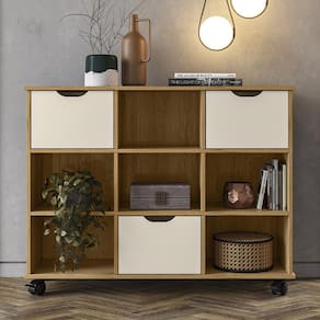 Nicho Organizador 1478 com Rodízios - Qmovi Estrutura em MDP Pintura UV atóxica 9 Compartimentos 4 Rodízios Móvel multifuncional