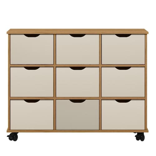 Conheça o Nicho Organizador 9 Gavetas com Rodízios Freijó/Off White da Qmovi destaca-se por sua versatilidade e design inteligente, sendo uma excelente escolha para quem busca otimizar o espaço. A combinação de Nicho Aberto e gavetas fechadas oferece uma ampla solução de armazenamento, permitindo que organizem desde brinquedos até materiais escolares com facilidade. Os rodízios reforçam a funcionalidade do móvel, facilitando a reorganização do ambiente conforme necessário. Além disso, o Nicho Multiuso conta com ótima durabilidade pelo uso de MDP/MDF e o acabamento em pintura UV, que protege o móvel contra desgastes do dia a dia e confere um visual moderno e elegante. O Quarto Infantil ganha não apenas em organização, mas também em estilo, proporcionando um espaço acolhedor e encantador para as crianças. Adicione ao carrinho e transforme seu espaço com este Nicho Organizador!