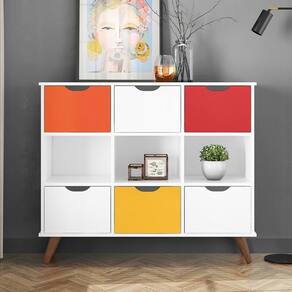 Esse armário organizador composto por 3 nichos e 6 gavetas é o móvel ideal para deixar tudo no lugar, pois além de funcional, ainda dá um toque de charme na decoração do seu ambiente graças aos pés retrô e os puxadores modelo cava. Somado a esses adjetivos, esse nicho também tem uma qualidade inquestionável e com o melhor custo-benefício, uma vez que é fabricado em MDP 15mm, ou seja, madeira proveniente de reflorestamento, com acabamento em pintura UV, o que garante maior resistência e durabilidade. Ah, e para completar esse nicho organizador é multiufuncional, podendo servir de apoio para brinquedos, livros, documentos, objetos decorativos e o que mais você quiser.