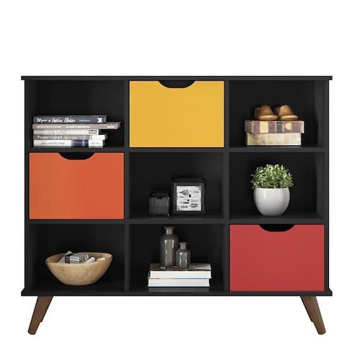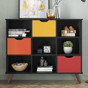 Nicho Organizador Retrô 1478 Com 3 Gavetas Preto/colorido - Qmovi Preto/colorido Nicho Organizador Retrô 1478 com 3 Gavetas - Qmovi O Nicho Organizador foi pensado para facilitar o processo de organização. É um produto muito prático que pode ser utilizado em diversos ambientes como quarto infantil, escritório e sala de estar. Ele possui 9 compartimentos internos que contribuem para organização do e pés retrô que agregam charme e elegância ao ambiente. Acompanha Kit com 3 Gavetas, um módulo opcional que foi feito para incrementar o Nicho Organizador, melhorando sua divisão interna e dando mais beleza e praticidade ao seu ambiente. As gavetas contam com fitas de feltro na parte inferior para não danificar o móvel. Nicho Organizador 1478 com Pés Retrô - Qmovi - Estrutura em MDP - Pintura UV atóxica - 9 Compartimentos - Pés retrô - Móvel multifuncional