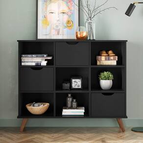 Com 9 compartimentos internos, que contribuem para organizacao do local, o movel possibilita a acomodacao de diversos objetos.