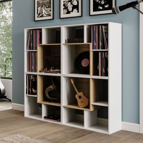 O(a) Nicho Organizador Sonho 16 Prateleiras Branco/Aveiro - Movelbras é produzido em MDP na escala de brilho Fosco, e possui um grau de dificuldade de montagem: Médio.