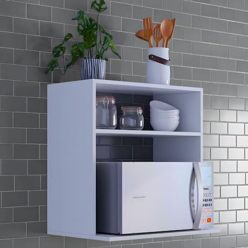 Otimize o espaço da sua cozinha com este suporte de micro-ondas resistente e funcional. Ideal para quem precisa liberar espaço na bancada, ele permite a fixação do micro-ondas na parede, mantendo o eletrodoméstico seguro, acessível e com excelente aproveitamento da área útil. Acabamento: BP Ambiente Principal: Cozinha codigo_ean: 7900288145284 Complexidade da Montagem: Baixa: pode ser montado por uma pessoa sozinha Cor: Branco Cor do Produto: Branco Escala de Brilho: Brilhante Itens Inclusos: 1 Suporte e Kit para Montagem Linha ou Coleção: Suporte Grécia Manual de Montagem e Instalação: https://cdn2.madeiramadeira.com.br/atributo/brovalia/2917763-5881-17468212010453.pdf Marca: Brovalia Material da Prateleira: MDP Material Principal: MDP Necessita Montagem: Sim Origem do Produto: Nacional Peso: 10 kg Peso Máximo por Prateleira: 10 kg Possui Espelho: Não Possui Possui Fundo: Não Possui Portas: Não Possui Prateleiras: 01 Possui Toalheiro: Não Recomendações de Uso, Manutenção e Limpeza: Utilizar um pano levemente úmido Sistema de Montagem: Parafusos e Cavilhas Suporta Até (kg): 25 kg Tipo de Nicho: Suporte Marca: Brovalia