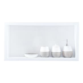Nicho para banheiroCom o nicho você organiza seus produtos de higiene e banho aproveitamento melhor seu espaço, deixando seu banheiro mais elegante.Especificações técnicas:Material:- fundo e laterais: porcelanato polido- borda: alumínio com pintura eletrostática não enferruja - cor da borda : branca idêntico a cor do porcelanato Tamanho:- medidas externas: 61,8 cm comprimento x 31 cm altura x 11 cm profundidade- medidas internas: 60 cm comprimento x 30 cm altura x 10 cm profundidade- medidas da borda: 2,5 cmEnviamos até 2 peças por pedidoObservação: esse modelo de nicho é próprio para embutido na parede. Marca: In Company Home