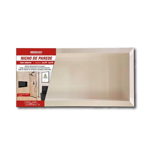 A qualidade Mebuki agora na internetATENÇÃO: Produto feito em Plástico de Engenharia. Não é porcelanatoO Nicho para Banheiro Mebuki, é o item essencial para manter a elegância e organização do seu espaço. Feito 100% em plástico de engenharia de alta qualidade, possibilita uma fácil instalação e limpeza, além de estar disponível em diversas cores.Nosso nicho pode ser embutido, se adaptando a diversos estilos de banheiros, cozinha e qualquer outro ambiente da casa, valorizando a decoração, otimizando o espaço, além de melhorar a organização dos produtos.Com uma profundidade de 7 cm, altura de 30 cm e largura de 60 cm, este nicho oferece espaço suficiente para armazenar seus produtos de forma organizada.Suas bordas com acabamento bisotê, impedem o acúmulo de água entre o nicho e a parede, evitando futuras infiltrações.Já vem pronto para instalar.PRINCIPAIS CARACTERISTICAS: Medidas externas: 62,5 cm Largura - 32,5 cm AlturaMedidas Internas: 26 cm Largura - 55 cm Altura - 8 cm ProfundidadeContém: 1 UnidadePode ser utilizado silicone para fazer o acabamento e instalaçãoComposição: ABS.Garantia: 12 meses