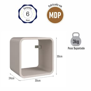 O Nicho Simples Linha Curve da Completa Móveis apresenta funcionalidade, praticidade e elegância com design arrojado e atemporal! Com cantos arredondados, traz uma leveza ao ambiente. As molduras laterais arredondadas são em MDF, garantindo qualidade superior. Ideal para decorar, permitindo várias ideais para composição de ambientes. Acompanha buchas de 8mm para fixação. Produto entregue desmontado. Ambiente Principal: Quarto codigo_ean: 7900288244413 Complexidade da Montagem: Baixa: pode ser montado por uma pessoa sozinha Cor: Bege Dunas Cor do Produto: Bege Dunas Escala de Brilho: Fosco Itens Inclusos: 1 Nicho, Kit Ferragens e Manual de Montagem Linha ou Coleção: Curve Manual de Montagem e Instalação: https://cdn2.madeiramadeira.com.br/atributo/completa-moveis/3239510-5229-17588892977085.pdf Marca: Completa Móveis Material Principal: MDP Necessita Montagem: Sim Origem do Produto: Nacional Peso: 2,9 kg Possui Espelho: Não Possui Possui Fundo: Não Possui Portas: Não Possui Prateleiras: Não Possui Toalheiro: Não Recomendações de Uso, Manutenção e Limpeza: Use um pano levemente umedecido com água, seguido de pano seco. Não utilize produtos químicos ou abrasivos. Sistema de Montagem: Sistema de montagem via parafusos, cavilhas e kit minifix. Suporta Até (kg): 3 kg Tipo de Nicho: Cubo