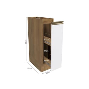 Sua cozinha completa com toda a beleza e praticidade do Nicho Porta Condimentos 20cm N721 da Cozinha Celeste da Kappesberg. Produzido em chapa MDF de 15mm, ele garante robustez, firmesa e qualidade, além de um acabamento perfeito. Com sete camadas de pintura tanto na parte interna quanto na externa, a caixaria possui pintura touch na cor nogueira, contando com a textura dos veios da madeira, enquanto que a porta, com pintura na cor branca, possui acabamento em brilho. Uma combinação linda e moderna, que garantirá mais luminosidade e aconchego ao espaço, deixando sua cozinha perfeita. E para um melhor acabamento, ele conta com rodapés, mas também acompanha as ferragens para ser montado suspenso, garantindo muita praticidade. Com uma porta corrediça, ele possui duas prateleiras para a organização de temperos e outros condimentos, facilitando o acesso e o preparo de suas receitas. E seu puxador em alumínio na cor dourada complementa o estilo e a qualidade do produto, garantindo um diferencial único para sua cozinha. Renove seu espaço e o deixe ainda mais completo com a Cozinha Celeste da Kappesberg.