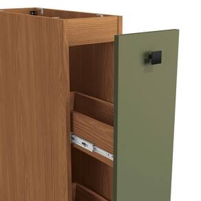 Com até sete camadas de pintura, a caixaria possui acabamento touch na cor canela, com a textura dos veios da madeira, enquanto a porta, em MDP e acabamento BP, é mais resistente contra riscos, arranhões e gotas d'água, e na cor verde frevo, possui acabamento fosco. Uma combinação aconchegante e moderna, que dará ainda mais destaque ao seu espaço, remetendo aos tons da natureza e deixando sua cozinha perfeita.