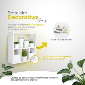 Feito em MDP 15mm na cor Branco, esse nicho conta com suportes invisíveis que se adaptam a qualquer estilo de decoração.