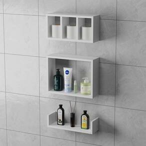 Kit é composto por: 01 Nicho com divisórias, 01 Nicho retangular e 01 prateleira formato U.