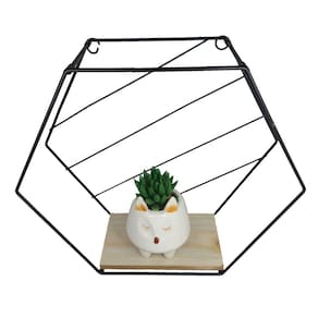 Nicho Prateleira Hexágonal Aramada Em Madeira Preto - Diagonal Produzido em metal e madeira com design moderno e de fácil instalação, serve para organização de livros, vasinhos e pequenos objetos decorativos, otimizando o espaço das paredes. Linda peça de decoração e funcional, pode ser usada no cantinho do café para organizar as xícaras, no banheiro e lavabo para organizar toalhas de mão e papel higiênico, num cantinho especial para livros e plantinhas, enfim para dar um toque moderno e despojado a sua decoração.
