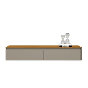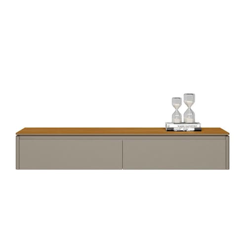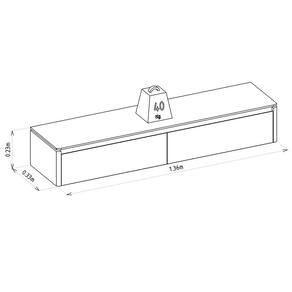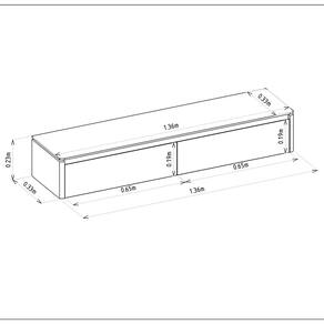 Espaço útil tampo: 1,36m de largura x 0,33m de profundidade Nicho : 1 nicho que suporta até 40kg Passa fio: Possui Tampo : MDF Porta : 2 portas basculante em MDP Dobradiças : Dobradiças metálica Demais acessórios : Pistão a gás
