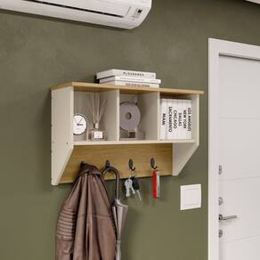 O Nicho Suspenso Organizador Catar é a solução ideal para quem busca otimizar espaços com elegância e funcionalidade. Produzido em MDP de alta resistência, este móvel versátil conta com prateleiras superiores e ganchos estratégicos, perfeitos para organizar bolsas, casacos, chaves e itens decorativos em halls de entrada, quartos ou escritórios. Seu design inteligente permite o aproveitamento máximo da parede, mantendo o ambiente livre de desordem enquanto adiciona um toque moderno à decoração. A estrutura robusta garante durabilidade, tornando-o um investimento prático para facilitar sua rotina diária. Transforme a organização da sua casa com este móvel indispensável que une estética e utilidade em uma única peça. Garanta já o seu e renove seu ambiente! Acabamento: Pintura UV Ambiente Principal: Sala de Estar codigo_ean: 7900288335340 Complexidade da Montagem: Baixa: pode ser montado por uma pessoa sozinha Cor: Cinamomo/Off White Cor do Produto: Cinamomo/Off White Escala de Brilho: Fosco Informações Complementares: Seguir as orientações do manual de uso e montagem. Itens Inclusos: 1 Nicho, Manual de Montagem e Kit Ferragem Linha ou Coleção: Catar Manual de Montagem e Instalação: https://product-hub-prd.madeiramadeira.com.br/646900366/documents/dc3555c0-d159-4ee8-a09e-b29791b07c6f3397380365917714316694942.pdf Marca: RV Móveis Material Principal: MDP Necessita Montagem: Sim Origem do Produto: Nacional Peso: 7,5 kg Recomendações de Uso, Manutenção e Limpeza: Seguir as Orientações do Manual de Uso e Montagem Sistema de Montagem: Parafusos e Bucha Suporta Até (kg): 5 kg