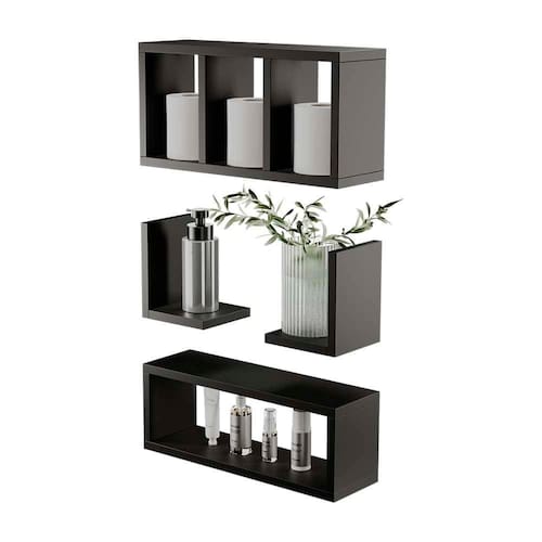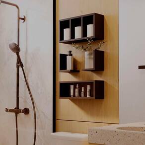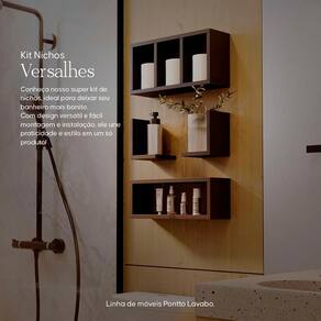 Kit é composto por: 01 Nicho com divisórias, 01 Nicho retangular e 02 prateleiras pequenas