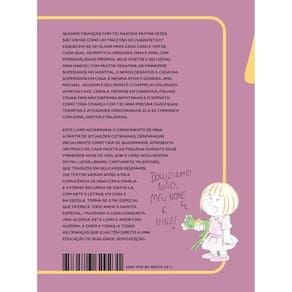 Quando crianças com T21 nascem, muitas vezes são vistas como um "pacotão do diagnóstico". Esquecem-se de olhar para cada caso e ver de cada qual as particularidades. Antes de ser uma criança com T21, Nina é Nina, com personalidade própria, seus gostos e seu gênio. Nina nasceu com muitos desafios, os primeiros superados no hospital, e novos desafios a cada dia, superados em casa. É menina ativa e geniosa, tem gostos bem pessoais, ama Michael Jackson e seu herói é o Chapolin Colorado. Aprecia café, cebola, pepinos em conserva, folhas cruas, mas não dispensa batatinhas e o sorvete. Como toda criança com T21, Nina precisa fazer suas terapias e atividades direcionadas, ela se comunica com sons, gestos e palavras. Este livro acompanha o crescimento dela, a partir de situações cotidianas, desenhadas inicialmente como tira de quadrinhos. Apresenta um pouco de cada faceta da pequena durante seus primeiros anos de vida, sob a visão acolhedora do pai, Libanio Lucas, cartunista talentoso, que traduziu em delicados desenhos (os textos vieram após) a rica convivência de Nina com a família e a forma inclusiva de educá-la, com arte e letras, em casa e na escola. Torna-se o pai especial que oferece todo amor à garota especial, trazendo a cada conquista uma alegria. Este livro é amor com alegria, a dizer a todas, a todas as crianças que elas têm direito a uma educação de qualidade, sem exceção. Libanio mostra aqui um pouco da rotina e da personalidade de Nina representadas de forma leve.