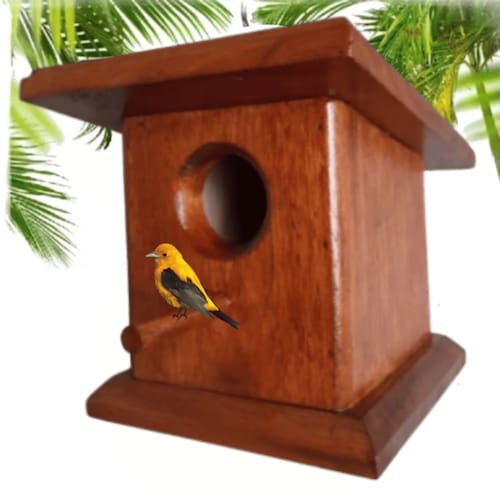 Feito com materiais de alta qualidade, este ninho se integra perfeitamente ao ambiente externo, sendo ideal para uso em viveiros ou pendurado em quintais. Ele não só ajuda na criação dessas belas aves, mas também atrai passarinhos, fazendo deles um visitante frequente em sua casa. Além disso, devido à natureza dos produtos em madeira, as cores e detalhes podem variar, conferindo a cada ninho um toque especial e único. Benefícios: