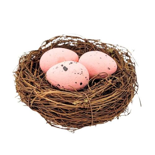 Ninho Decorativo Com 3 Ovos 12cm Decoração De Páscoa Rosa Charme Rústico: Ninho Decorativo com Ovos de Páscoa