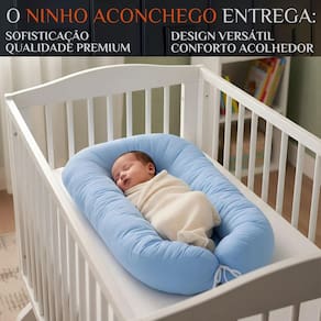 Ninho Super Macio Aconchego Proteção Recém-Nascido Cor: AZUL O primeiro abraço de carinho e segurança para o seu bebê, com conforto e proteção desde os primeiros dias. O Ninho Super Macio foi projetado para oferecer segurança, conforto e praticidade aos recém-nascidos. Seu design anatômico reduz o espaço do berço, simulando o útero materno, promovendo um sono mais tranquilo. Ideal para uso no berço, sofá, cama dos pais ou viagens, garantindo cuidado e praticidade no dia a dia. Imagine seu bebê dormindo protegido e aconchegado, envolvido em um ninho macio que transmite carinho e segurança. Cada detalhe foi pensado para gerar bem-estar e tranquilidade, proporcionando momentos de descanso mais calmos para o bebê e mais confiança para os pais. Extremamente prático, possui ajuste que acompanha o crescimento do bebê e pode ser levado para qualquer lugar. Fácil de higienizar, garante durabilidade e manutenção da maciez. Contém: Contém: 01 Ninho Fechado: 65cm x 45cm x 10cm Aberto: 76cm x 45cm x 10cm Interior do Ninho: 45cm x 20cm Composição: Tecido:200 FIOS 1. Até qual idade o bebê pode usar o ninho Indicado para recém-nascidos até aproximadamente 6 meses, conforme crescimento do bebê. 2. Pode ser durante toda a noite Sim, desde que corretamente e sob supervisão de um adulto. 3. É fácil de transportar para maternidade ou passeios Sim, é leve, portátil e ideal para viagens e deslocamentos. 4. O tecido mantém a maciez após várias lavagens Sim, basta lavar em ciclo delicado para preservar o toque macio e o acabamento. 5. Qual o diferencial do Ninho Super Macio Combina aconchego, proteção e praticidade, oferecendo noites mais tranquilas para o bebê e segurança para os pais. Proporcione ao seu bebê o aconchego e proteção que ele merece desde os primeiros dias. Garanta agora o Ninho Super Macio Aconchego Proteção Recém-Nascido e transforme o sono do seu bebê em momentos seguros e confortáveis. Marca: Não Informado
