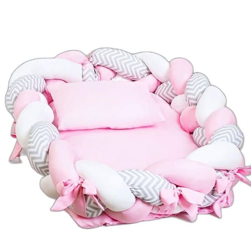 Ninho redutor berço trançado menina rosa 4 peças com trança e travesseiro