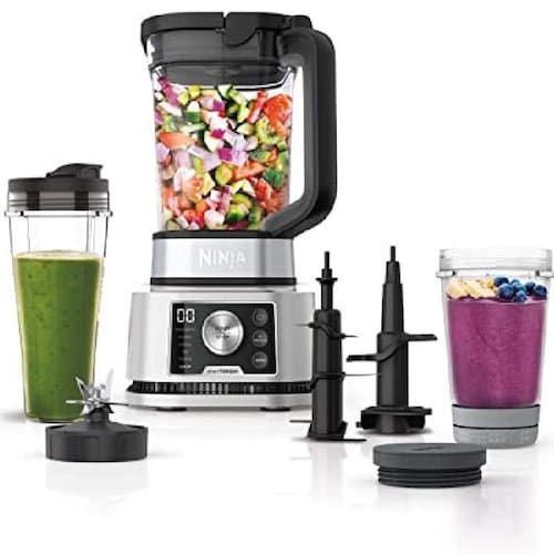 Sistema Smoothie e extração de nutrientes, Controle de velocidade variável com Smart torque, Sistema de liquidificador mais poderoso da Ninja, 6 programas Auto IQ pré definidos, 3 diferentes copos para 1 motor, Livre de BPA, Desligamento automáticoAcessórios