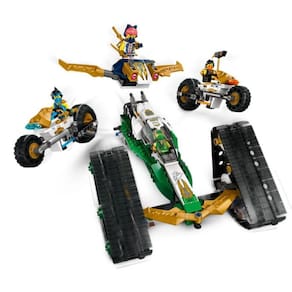 Ninjago Conjunto de Veículos Ninja - Lego 71820 Meninos e meninas de 9 anos ou mais podem aproveitar aventuras cheias de ação da 2 temporada do programa de TV NINJAGO Dragons Rising com este brinquedo de aventura 4 em 1 Ninja Team Combo Vehicle 71820 . As crianças podem brincar com o grande brinquedo de ação do veículo NINJAGO antes de separá-lo em 4 veículos menores: o planador de Sora com 2 atiradores de pinos, o carro de corrida off-road de Lloyd e os brinquedos de motocicleta de Cole e Nya. Este conjunto de ninja vem com 6 minifiguras NINJAGO: ninja Sora, Lloyd, Nya e Cole, vestidos com sua armadura especial de torneio e armados com acessórios de espada katana, e seus rivais de batalha, um Wolf Mask Warrior e um Wolf Mask General. A linha de conjuntos LEGO NINJAGO e brinquedos ninja montáveis para crianças inclui dragões, veículos e templos para que os fãs possam encenar aventuras com seus heróis. Cada conjunto de ninja pode ser criado com o aplicativo LEGO Builder, que guia você e seu filho em uma aventura de construção fácil e intuitiva. Amplie e gire modelos em 3D, salve conjuntos e acompanhe seu progresso. Contém 576 peças. Homologação Inmetro: 6016/2020-BRI-14